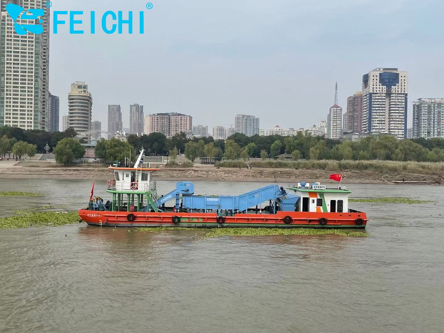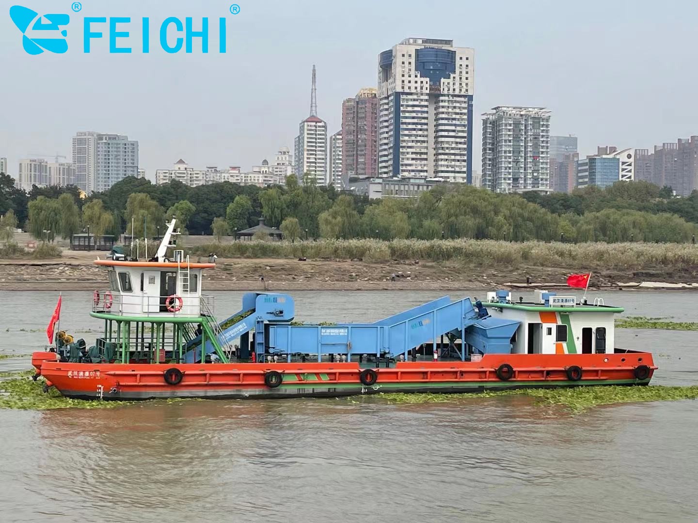 水域保潔供應(yīng)商:飛馳環(huán)保生產(chǎn)打撈船,割草船,浮萍收集船