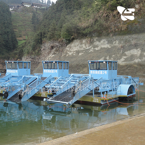 水域保潔供應(yīng)商:飛馳環(huán)保生產(chǎn)打撈船,割草船,浮萍收集船