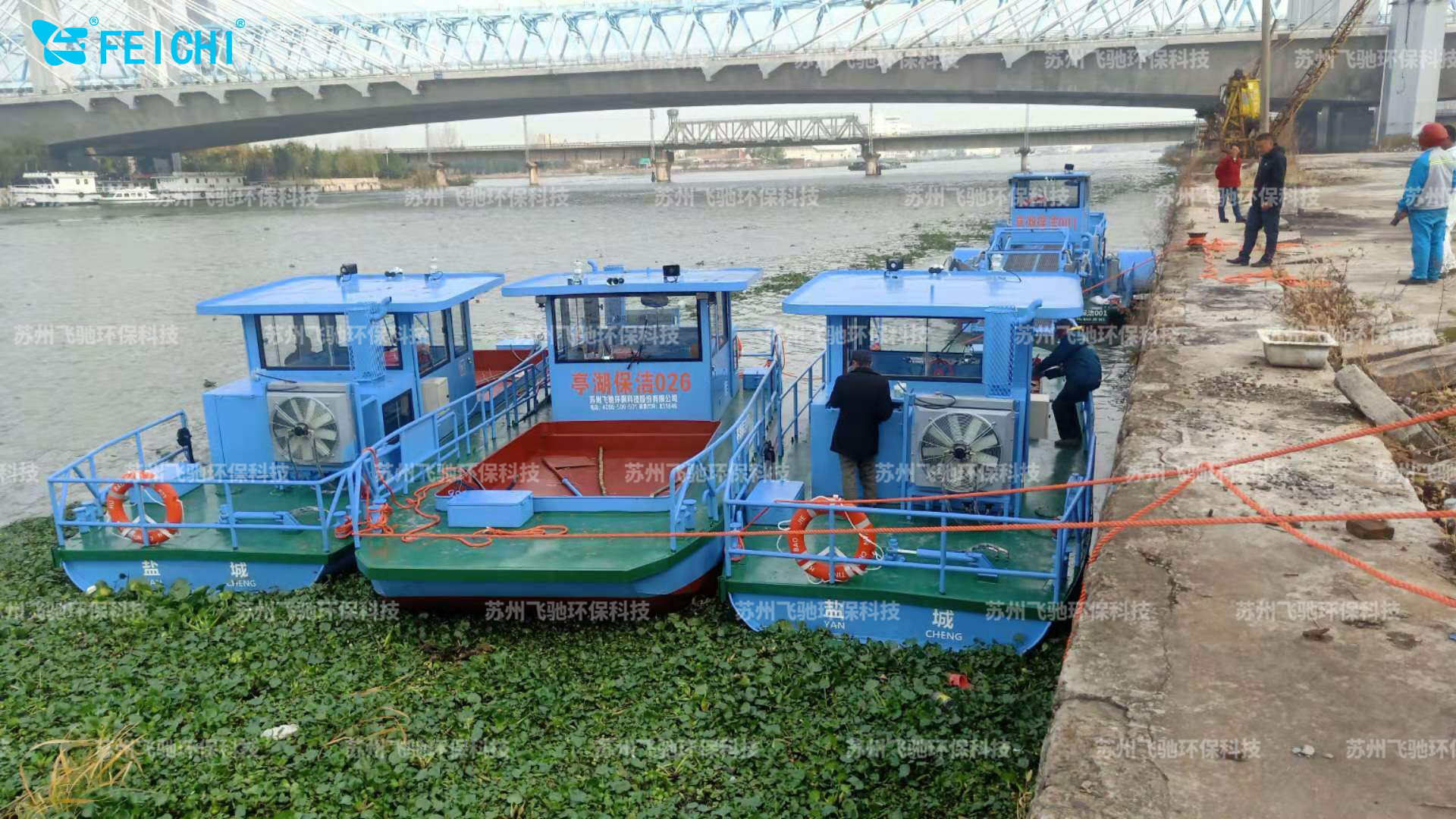 水域保潔供應(yīng)商:飛馳環(huán)保生產(chǎn)打撈船,割草船,浮萍收集船