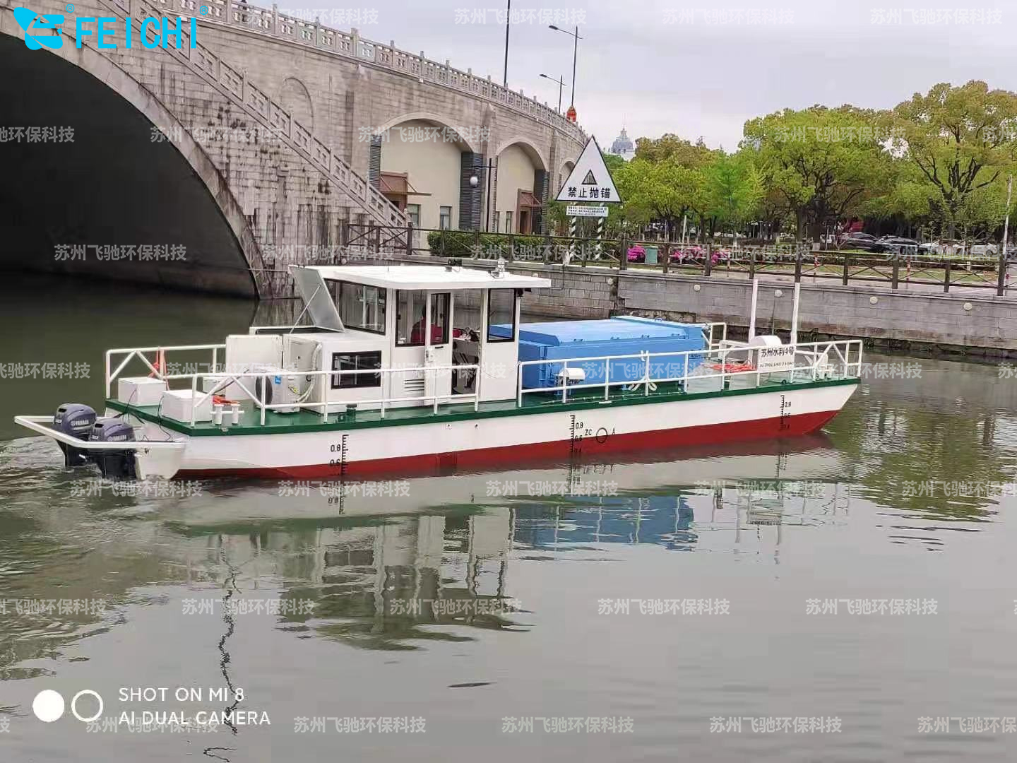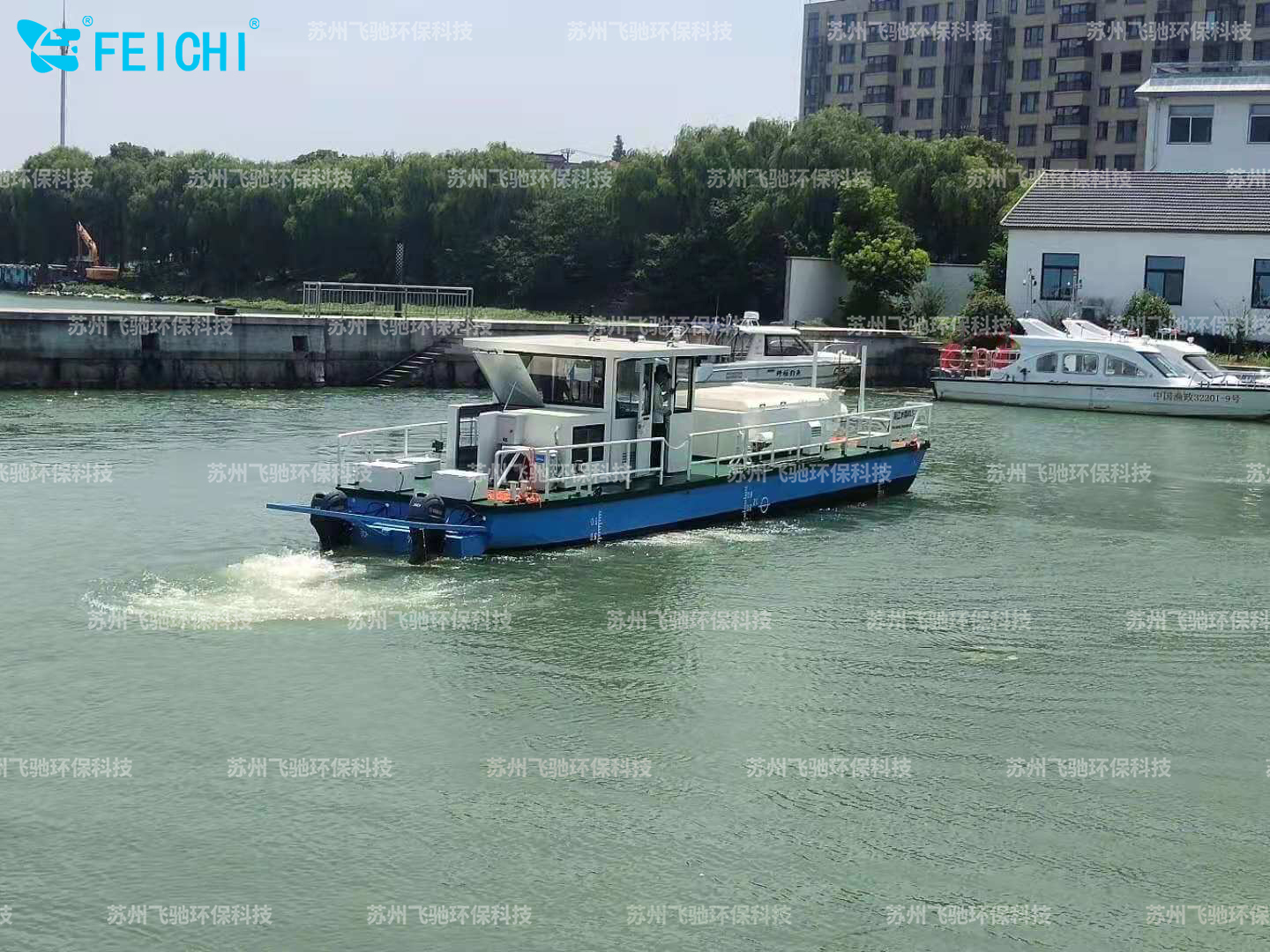 水域保潔供應(yīng)商:飛馳環(huán)保生產(chǎn)打撈船,割草船,浮萍收集船