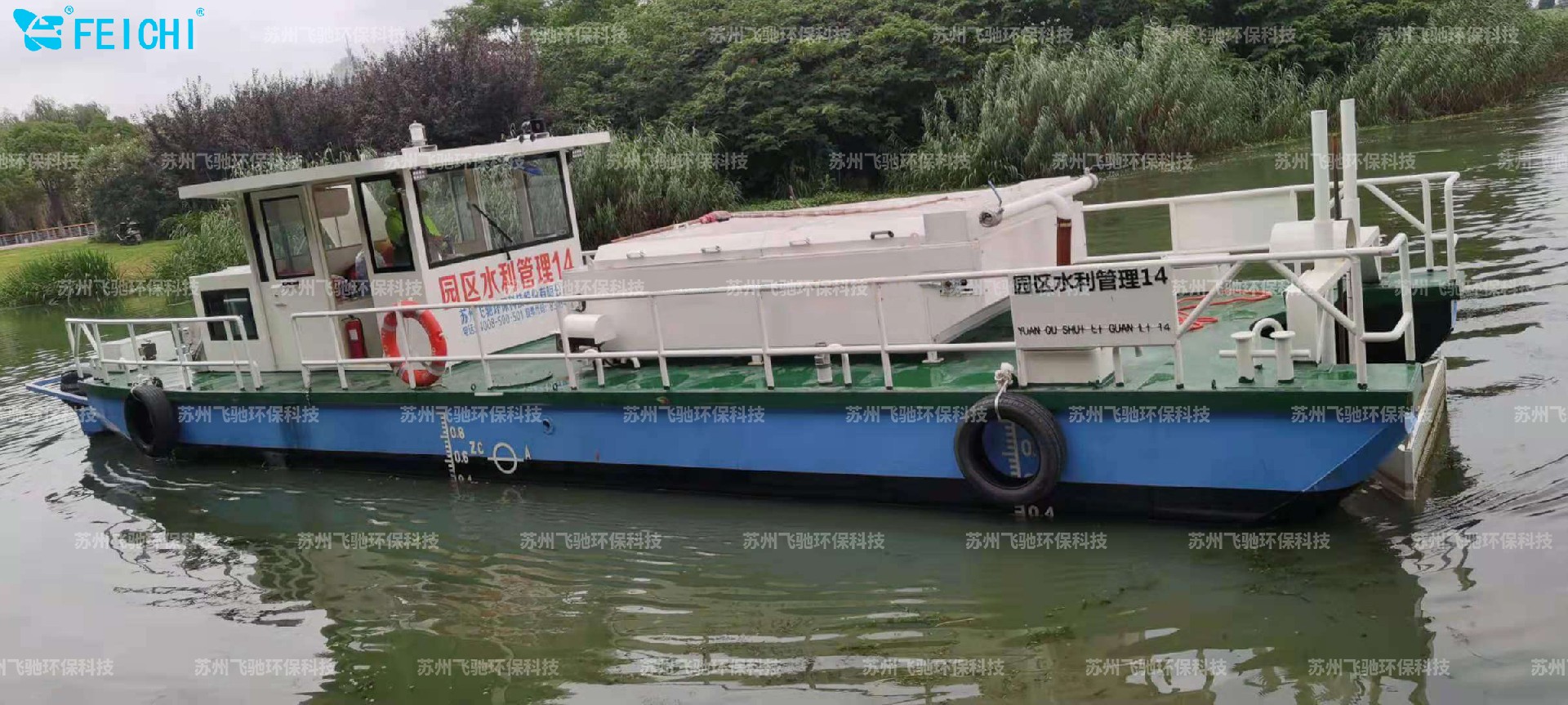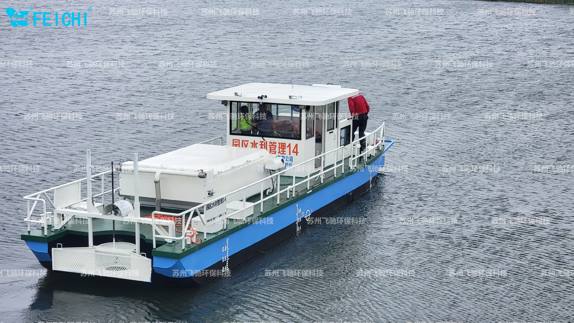 水域保潔供應(yīng)商:飛馳環(huán)保生產(chǎn)打撈船,割草船,浮萍收集船