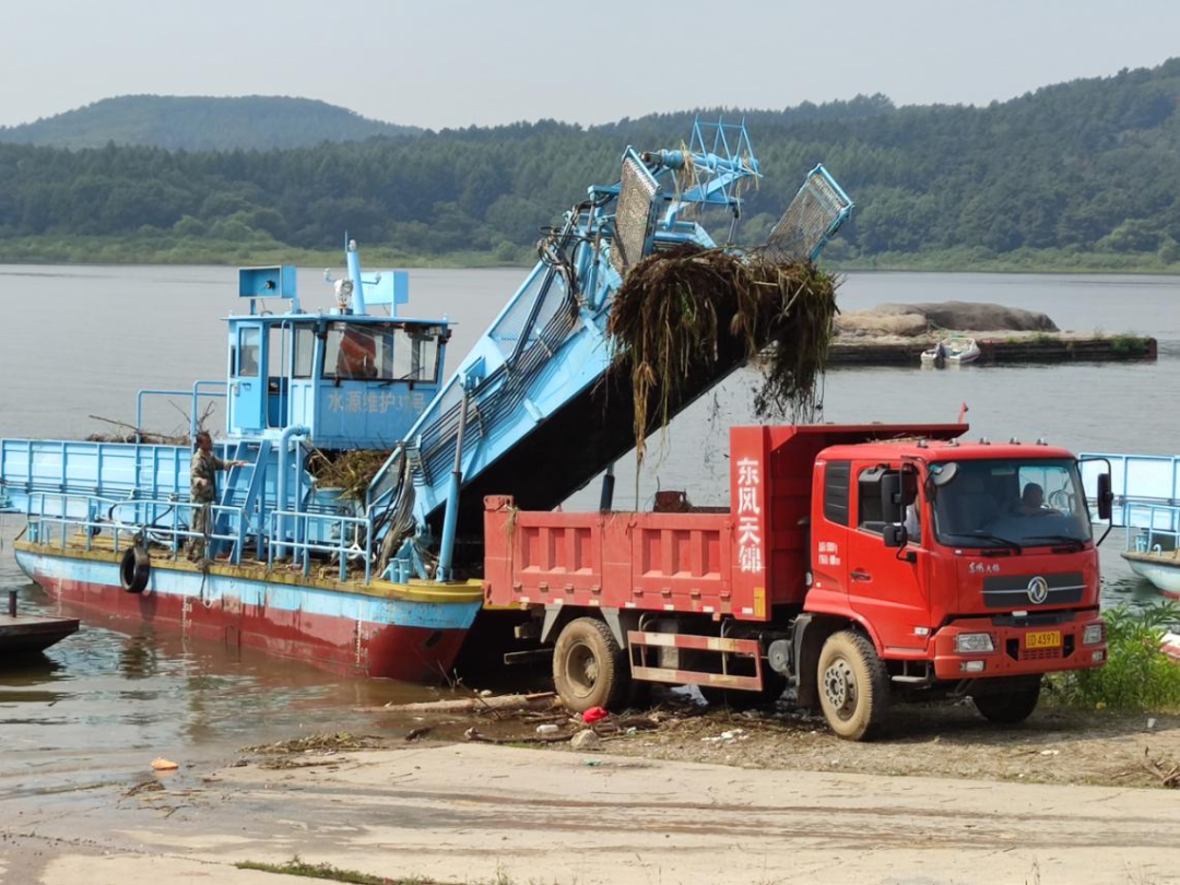 每逢雨季,河水湍急,漂浮物隨流入庫(kù)。為了清除洪水帶來(lái)的巨量漂浮物,避免危害水質(zhì)安全,2014年建設(shè)了清漂工程,在庫(kù)區(qū)內(nèi)共布設(shè)修建5座清漂平臺(tái)、2座碼頭及4條清漂道路,并配置了高效的清漂設(shè)備,在水庫(kù)上游布設(shè)7道攔漂網(wǎng),水質(zhì)監(jiān)管能力和清漂工作效率顯著提高,讓遼東的這顆明珠,不被一些漂浮物遮望眼。
